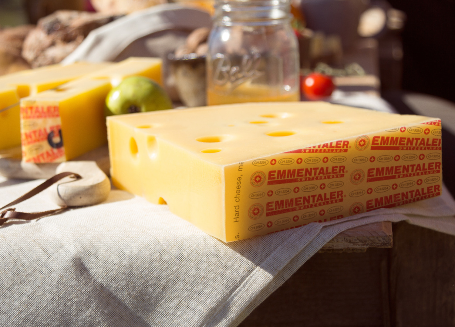 Il celebre formaggio deve il proprio nome alla valle in cui scorre l’Emme, un fiume del Cantone di Berna, dove la produzione di formaggio era attestata già nel XIII secolo. L’Emmentaler DOP viene oggi prodotto in circa 110 latterie di paese con latte fresco e non trattato di mucche alimentate esclusivamente a erba e fieno. Per un chilo di formaggio occorrono circa 12 litri di latte. È vietata l’aggiunta di altri ingredienti o l’utilizzo di sostanze geneticamente modificate.